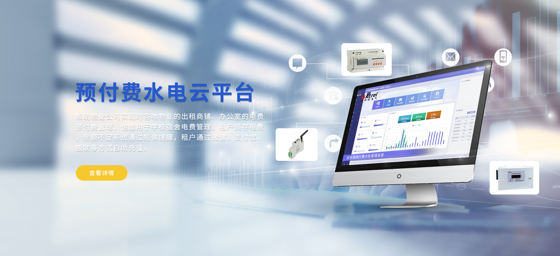 安科瑞提供的解決方案包括Acrel-EIoT能源物聯網云平臺、變電所運維云平臺安全用電管理云平臺、環保用電監管云平臺智慧消防云平臺、能源管理云平臺、工業企業能源管控平臺、遠程預付費云平臺餐飲油煙監管云平臺、電動汽車/電瓶車充電樁收費管理云平臺、電力監控/無線測溫系統、電能質量治理系統、電氣火災監控系統、消防設備電源監控系統防火門監控系統應急照明和疏散指示系統、智能照明控制系統、醫用隔離電源絕緣監測系統等,幫助用戶實現能源智能化、可視化、精細化管理,提高用能效率和用能安全,為企業節能降耗和實現能源數字化建設提供數據服務。